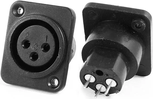 2 Pcs Audio MIC XLR 3Pin Female Chassis Panel Mount Socket Black