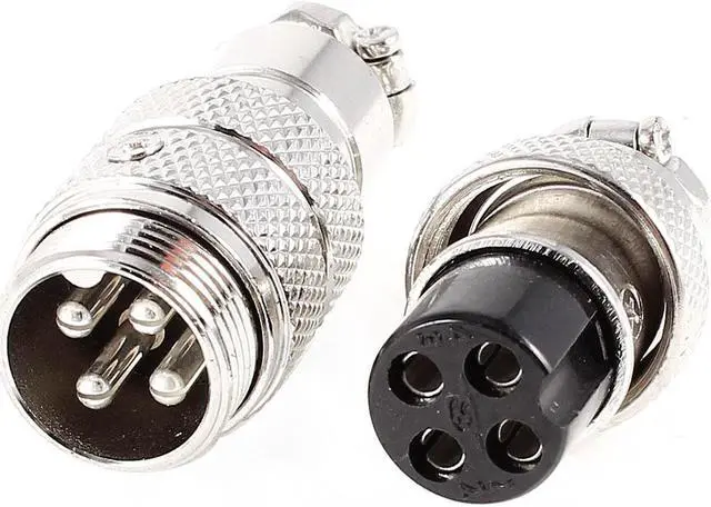 Unique Bargains Silver Tone 4 Pins Female Male Microphone Mic Connector Set