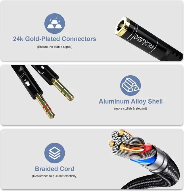 3.5mm headset splitter is equipped with corrosion-resistant 24K gold-plated.