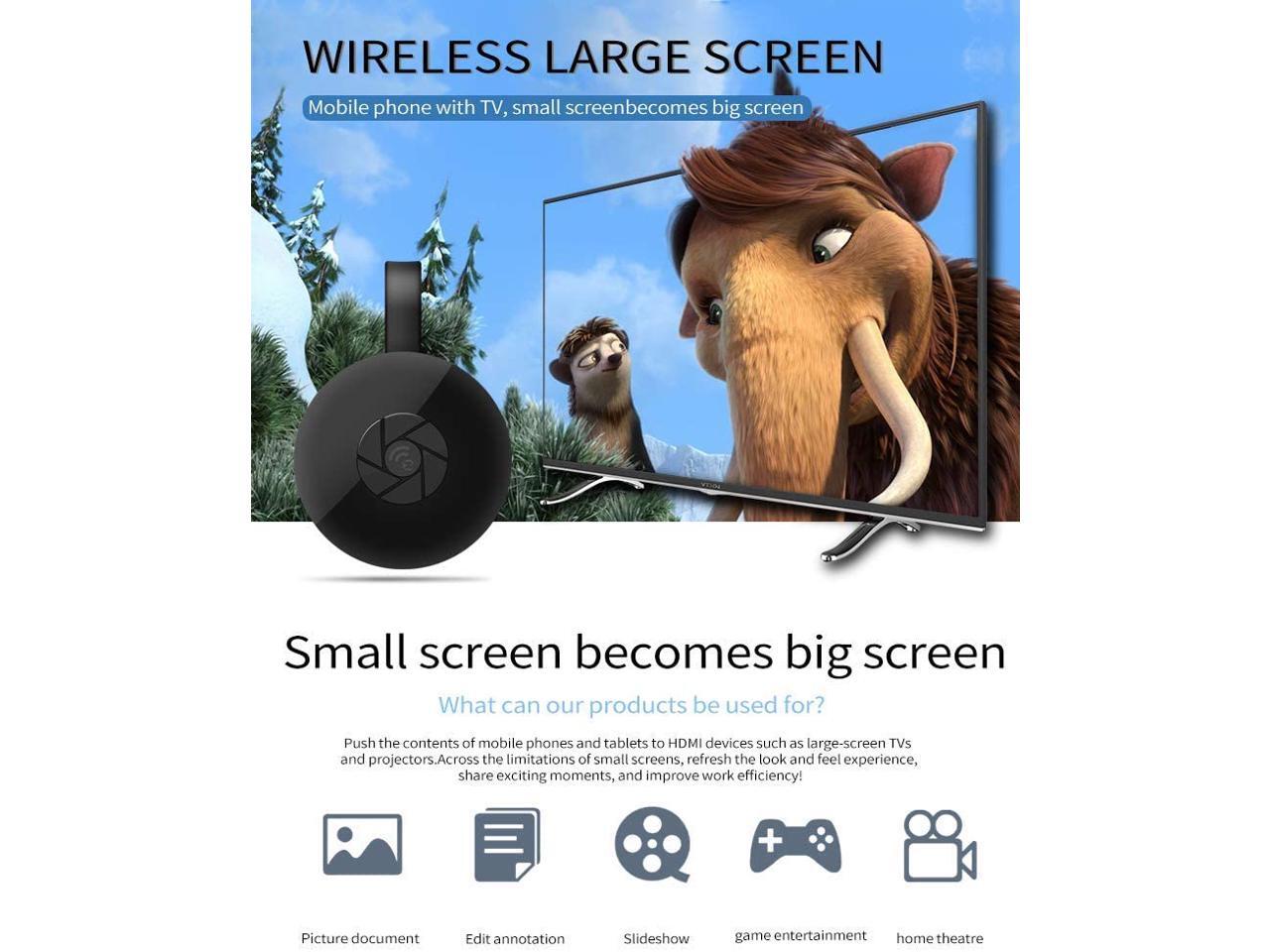 - Wireless display: The miracast wireless display adapter can project videos/audio/games/pictures from PC/tablet/mobile to high-definition display, enjoying the super large screen