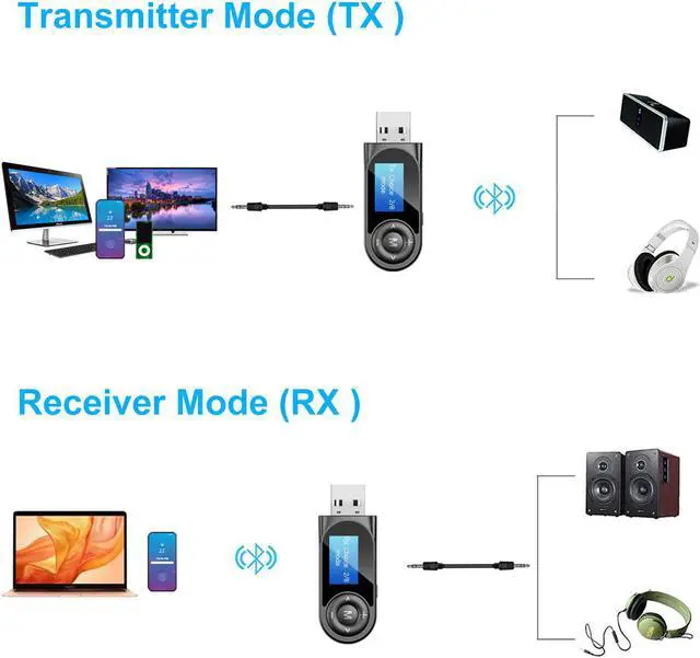 Aigital LCD 2-in-1 Bluetooth 5.0 Adapter