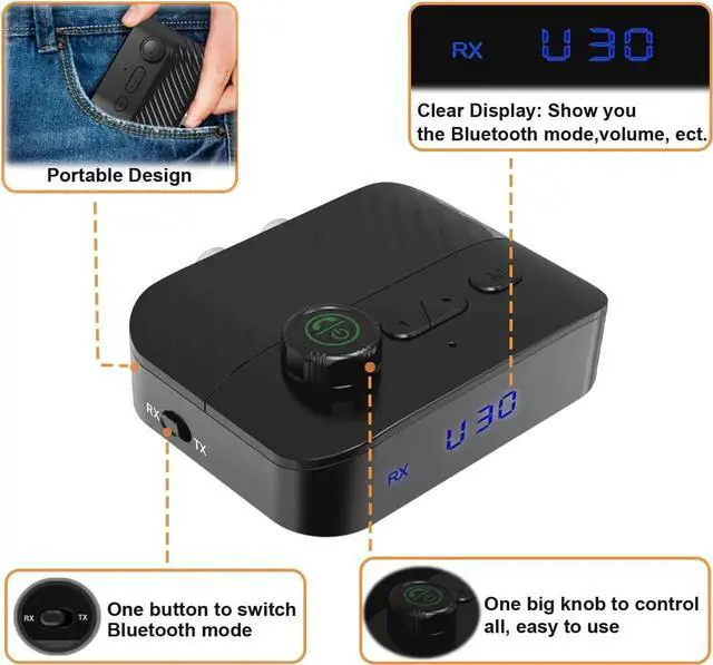 With a clear display screen: Lets you know which mode (receiver or transmitter) it's in and the volume level. It's effortless and user-friendly.