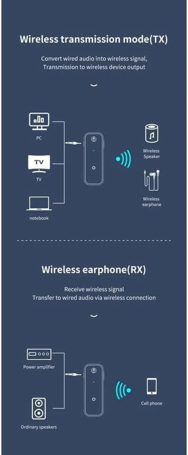 Compatible: Android, IOS system mobile phone and PAD, and all Bluetooth audio equipment, audio equipment with audio input interface