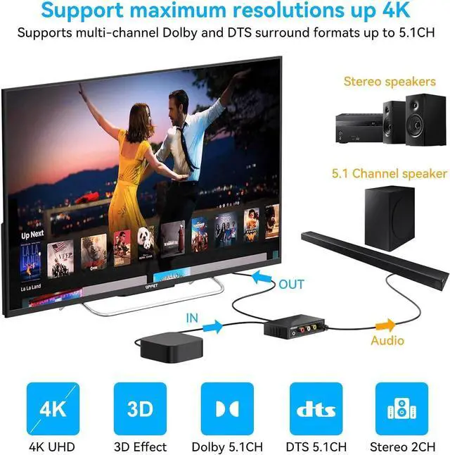 Please note: Some devices such as PS4, PS5 can only support up to 1080P. This audio splitter does not support 7.1 channels. )