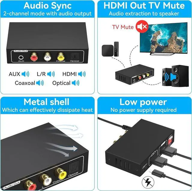Low Power ConsumptionEasier to install, Smaller size. the hdmi audio converter does not require an external power supply when connecting to most source devices. If it does not work properly, please use a USB cable to connect to the USB port of another device or a USB adapter (such as a cell phone power adapter)