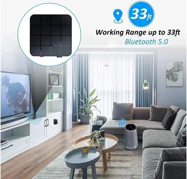 Upgraded Bluetooth 5.0 Adapter, providing you with a richer and near-lossless sound. And Bluetooth connection is more stable and wireless range is more than 33 ft.