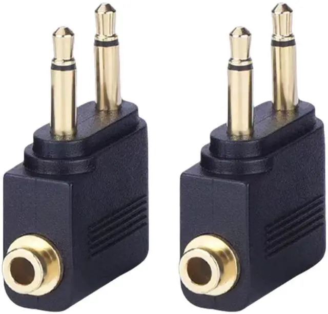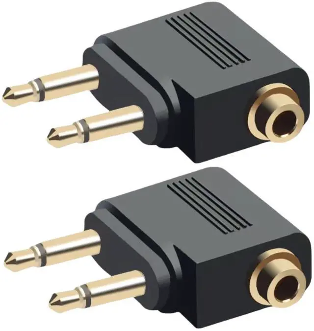 2-Pack Airplane Headphone Adapter, Dual 3.5mm Male to 3.5mm Female Gold Plated Flight Audio Converter for Airline Entertainment Systems, 1. Perfect In-Flight Entertainment Enjoy your favorite headphones on any flight! This adapter instantly converts airline dual-prong jacks to standard 3.5mm ports - no more crappy airline earbuds. 2. Premium Audio Quality Gold-plated connectors deliver crystal-clear sound with zero static. Finally hear your music and movies the way they're meant to be heard at 30,000 feet. 3. Must-Have Travel Essential Compact, lightweight (lighter than a quarter!), and includes 2 adapters - because losing one shouldn't ruin your flight entertainment.