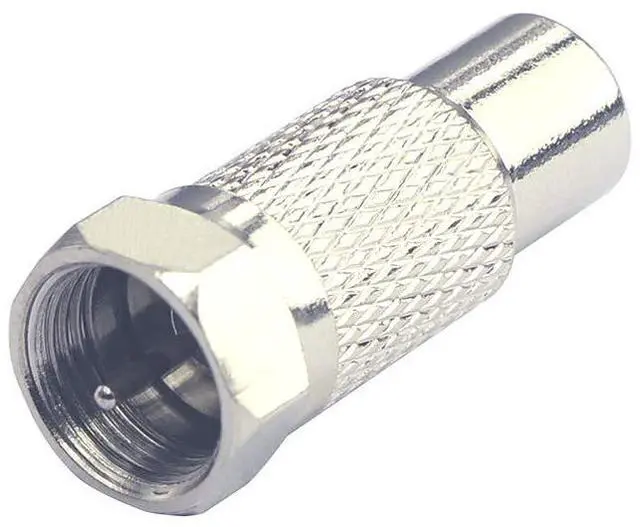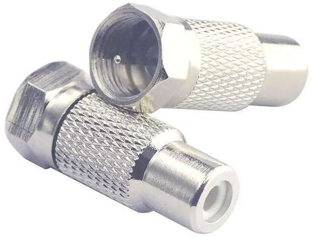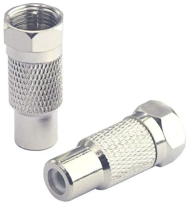 Nickel-plated adapter for converting "F" type connectors on Coax Cables into RCA. Widely compatible with Atari 2600/7800 Sega/Coleco/Commodore Game System