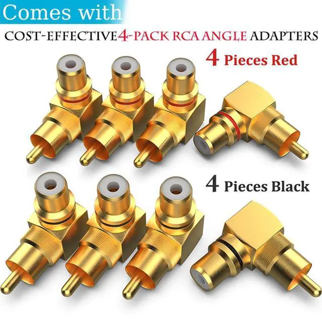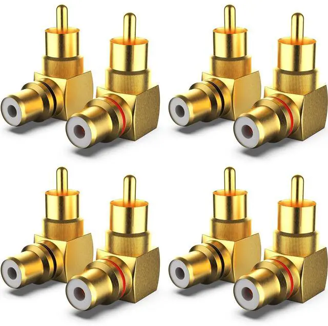 - HANDY CONNECTOR: 90 degree RCA adapter connects a subwoofer cable, RCA audio cable or RCA component video cable to an A/V receiver, subwoofer, DVD player, soundbar, car stereo, desktop computer or TV.Right Angle RCA Adapter connects to the RCA white and red channel ports found on video and audio electronic equipment; Adjustable RCA phono cable connector can be rotated to route the cable at the best possible angle from your AV receiver.