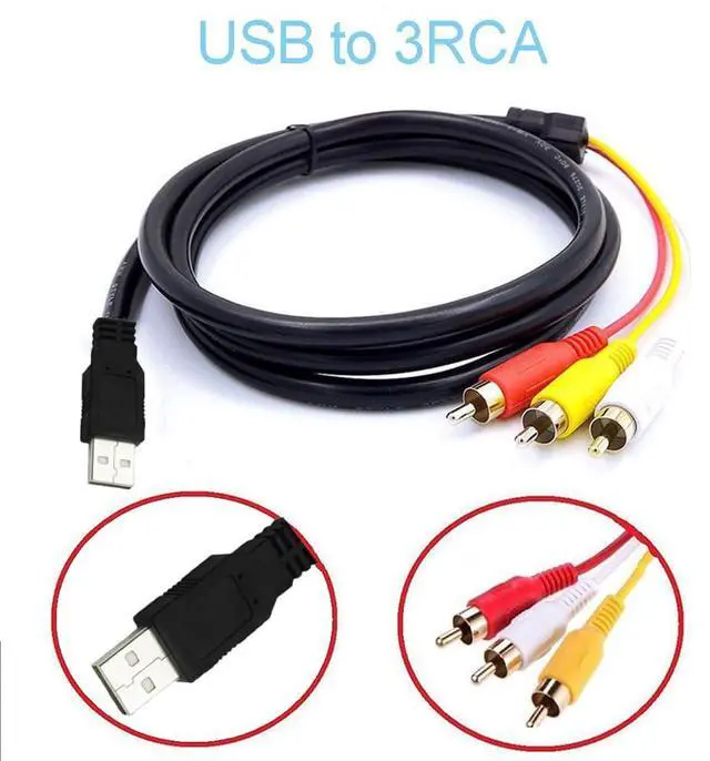 USB to RCA Cable, 1.5m USB Male to 3 RCA Male Jack Splitter Audio Video AV Composite Adapter Cable, for USB-enabled TVs, PCS, computers, smart phones and more USB decices. Compatible with a wide range of devices, this usb to 3 rca cable is perfect for connecting devices such as DVD players, HDTV receivers, TV sets, projectors, and AV receivers. It's the perfect solution for enjoying high-quality audio and video.