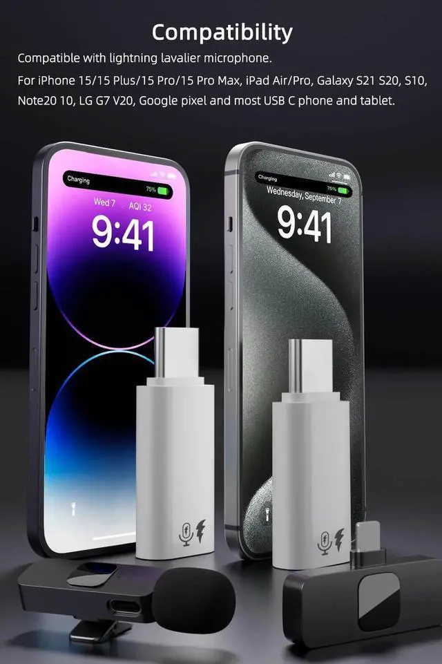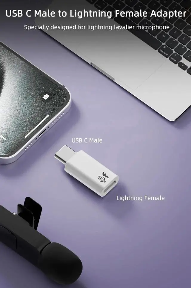 2 Pack USB C to Lavalier Microphone Adapter, Type C Male Converter for iPhone Wireless Lavalier Microphone, iPhone 16/15 Series, iPad Air/Pro, Not for Headphone and Data