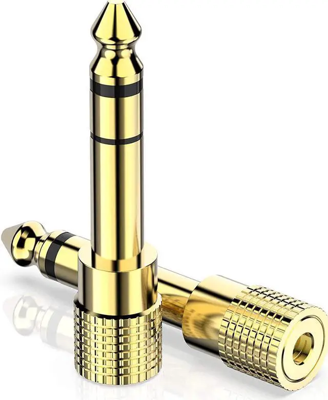 High Quality: The 6.35 mm male to 3.5 mm female 1/8 to 1/4 audio jack converter made of solid brass copper with a much longer service life compared with those plastic connectors with metal painting. 24K Gold-plated connectors resists corrosion and ensures minimal signal loss.