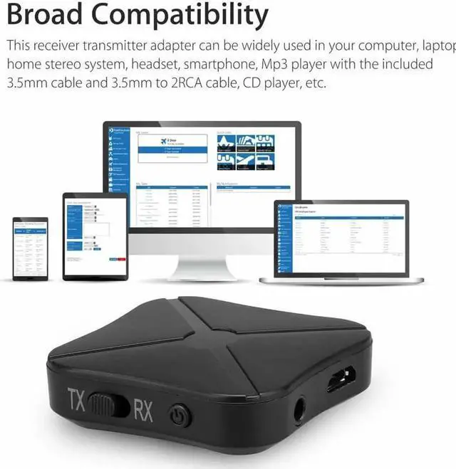 BroadCompatibility: This receiver transmitter adapter can be widely used in your computer, laptop, home stereo system, headset, smartphone, Mp3 player with the included 3.5 mm cable and 3.5 mm to 2RCA cable, CD player, etc.