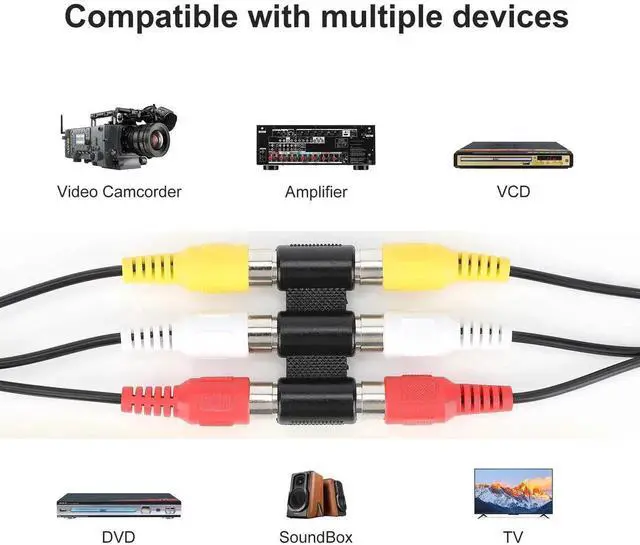 Wide Compatibility: This 3 RCA composite cable plug (white, red, yellow) can be used as an RCA extension adapter for use with (red, yellow, white) RCA male cables. Suitable for most devices with RCA connectors, including professional and home audio equipment, amplifiers, subwoofers, speaker cables, turntables, home theatre equipment, AV receivers, CD players, AV switches for game consoles, etc.