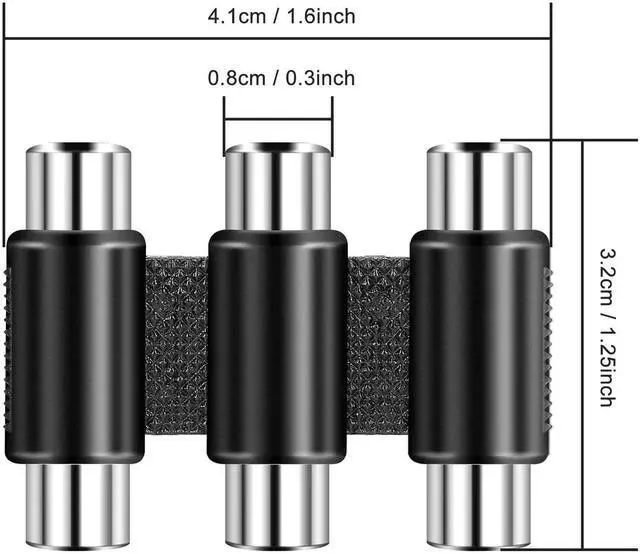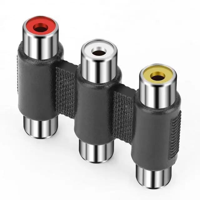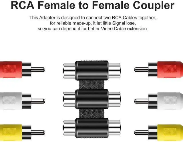 3 RCA Female Jack to 3 RCA Female Jack Coupler Nickel Plated 3 RCA Straight Adapter Audio Video RCA Cable Extension Extender Interconnect RCA Connector Converter Joiner for RCA Cable, Amplifier, Speaker, CD Player, TVs, Game Console and other device with RCA interface. RCA female to female adapter is used to connect two stereo audio cables with RCA type connectors to extend the length and maintain a high quality connection and stable signal.