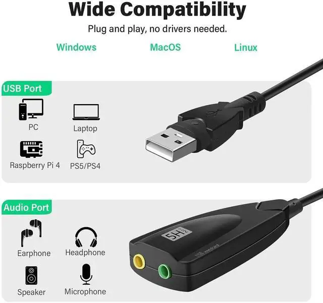 Additional Features- Plug & Play: No driver required& USB BUS-powered,no external power required. It bypasses the faulty sound card or the broken audio jack of your computer to regain its audio function. Stereo Jack Audio Adapter connectivity with 3.5 mm audio headphones, headset, speakers or microphone.