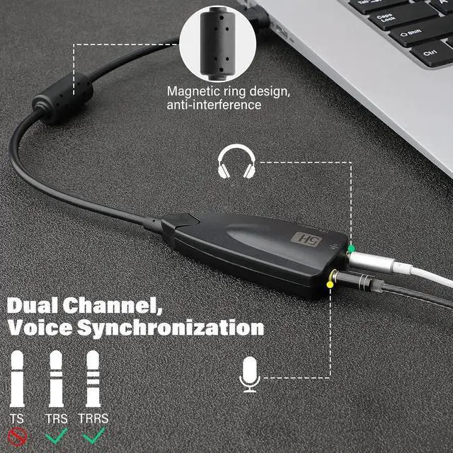- Compact and Portable: Durable ABS material made the USB to headphone adapter compact and lightweight. IMPORTANT NOTE: This usb audio converter only supports mono microphone TRS, does NOT support TS, TRRS.