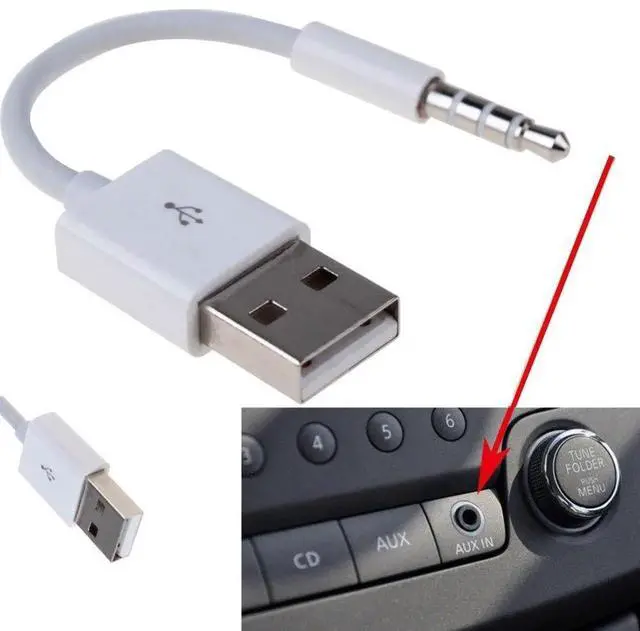 2pcs/lot USB Type A Male to Aux 3.5mm Male Cable Audio Plug Connector Headphone Cables Compatible with Shuffle 3rd, 4th, 5th, 6th and 7th Generation