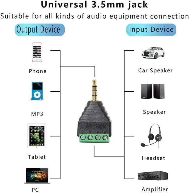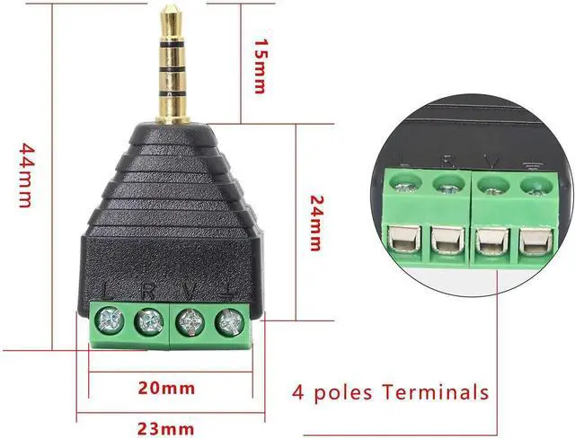 Name3.5mm Screw Terminal Gold Plated 3.5mm (1/8") TS Mono Male to 4 Pin Female Screw Terminal