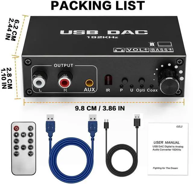 - Plug & Play: Connect the optical or coaxial cable to the signal source and converter, or connect the USB cable to the laptop and optical to rca adapter, then connect the RCA or 3.5mm audio cable to the output device and optical to 3.5mm jack adapter. You can easily select the coaxial / optical / USB input and adjust the volume/bass through the remote control.