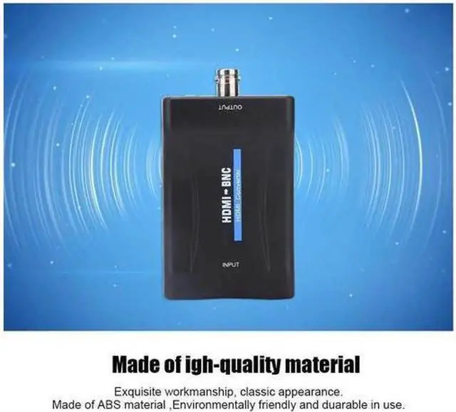 REMOVE INTERFERENCE, QUALITY MATERIALAudio signal converter adapter converts HDMI digital signals into BNC composite video signals and 3.5 mm stereo audio signals for the elimination of analog audio cable transmission interference. Adapter HDMI to BNC made of ABS material, which is duarable in use. Made of igh-quality material with exquisite workmanship and classic appearance.