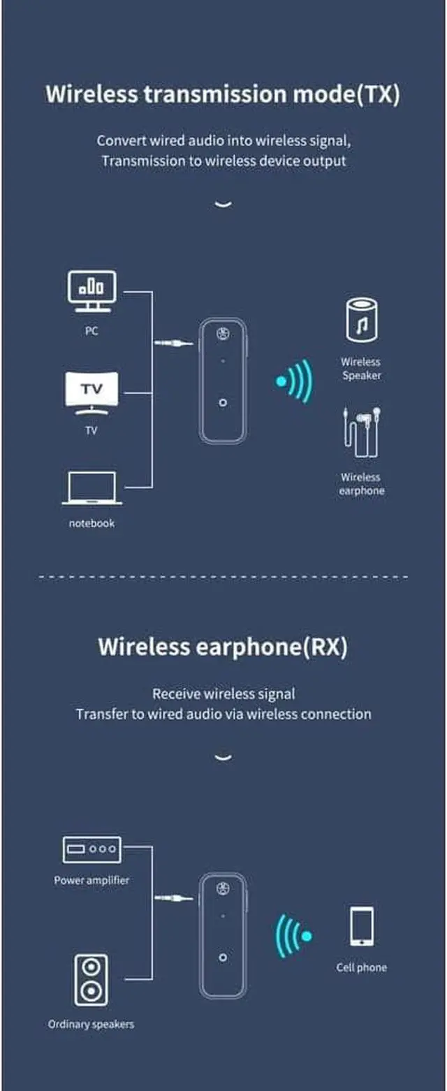 Compatible: Android, IOS system mobile phone and PAD, and all Bluetooth audio equipment, audio equipment with audio input interface