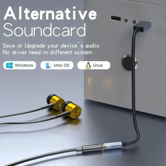[2 IN 1 Alternative Soundcard] This USB audio adapter could be a replacement for the broken sound card & add a new 3.5mm aux port to the computer. Need No Driver. It support all the USB audio enable devices , such as PC, Laptop, PS4, Xbox, Mac, 4-Pole Microphone (not support PS3, TV, Car, 3-pole mic). Systems like Windows 10/8.1/8/7/XP/Vista , Linux . Softwares like Skype, Hangouts & etc.