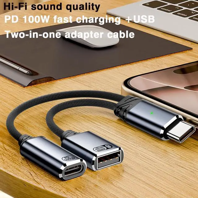USB COTG with power: The USB COTG adapter with power contains 1 USB-C 60W PD charging interface 1 USB-A 2.0 interface and is connected to 1 output Type-C interface to provide high-speed data transmission. Only applicable to USB 2.0 devices 2.60W