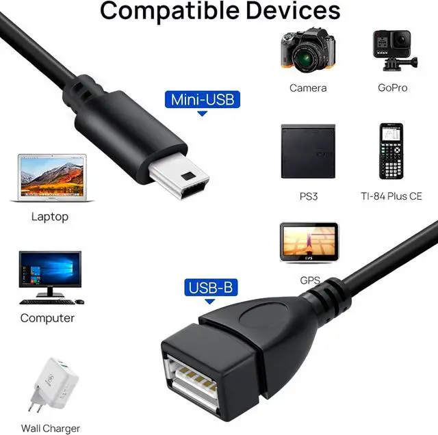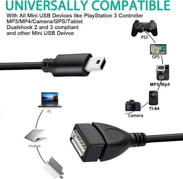 Main Feature: USB Mini 5pin male to USB 2.0 Female OTG Host Cable Female USB to 5 pin Male Mini USB Adapter It also work with MP3 MP4 mobile phone etcUSB A Female to Mini USB B 5 Pin Male Adapter Cable. 1 Year Warranty.