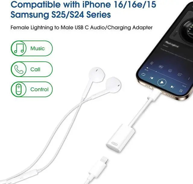 HDMI DevicesWarning 2: NOT for Pencil NOT for iPhone 14/13/12/11/Xs SE Series NOT for OTGOn-The-GoCar Play Card Reader USB Flash Drive HDMI Keyboard Mouse U Disk Hubs Microphone etc. OTG(On-The-Go) is a specification that allows USB devices such as tablets or smartphones to also act as a host allowing other USB devices such as USB flash drives digital cameras to be attached to them. Compatible ONLY with iPhone 16/16e/16 Pro/16 Pro Max/16e/15/15 Pro/15 Pro Max Earphones iPad/Airpods with USB C Interfaces Galaxy S25/S24/S23/S22/S21 series. Charging data and audio equipped with a high-performance audio chip this lightning to usb c adapter delivers crystal-clear distortion-free sound quality. Perfect for music gaming and video calls and it supports USB 3.0 protocol with PD fast charging and data transfer. Reversible & Hassle-Free Design featuring dual-sided insertion for both USB C and Lightning connectors No drivers or software required.