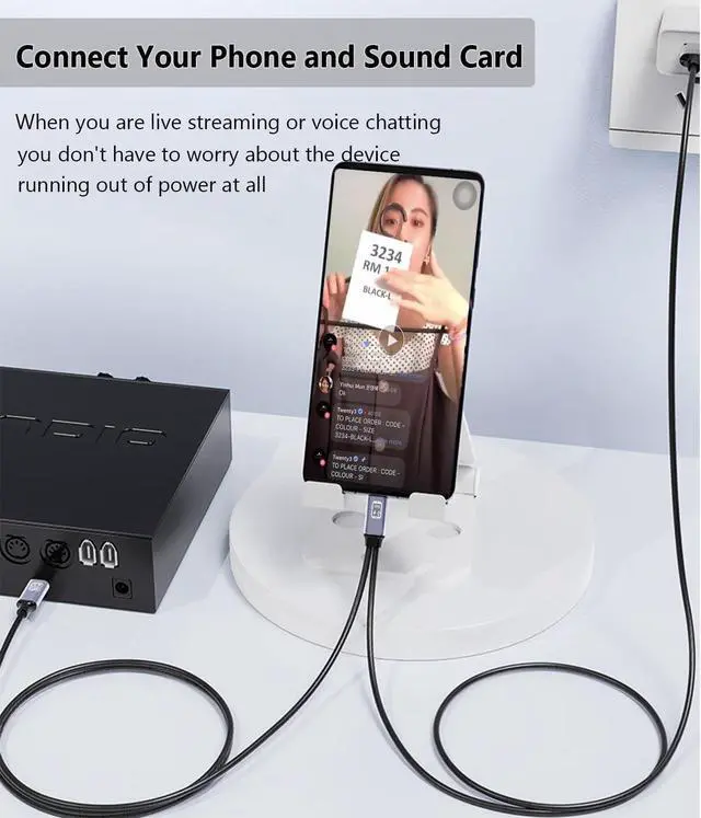 Speed Charging: USB C to USB C audio charger adapter USB fast charging cable supports device charging while live streaming without slowing down the charging speed. It is convenient to connect the sound card.