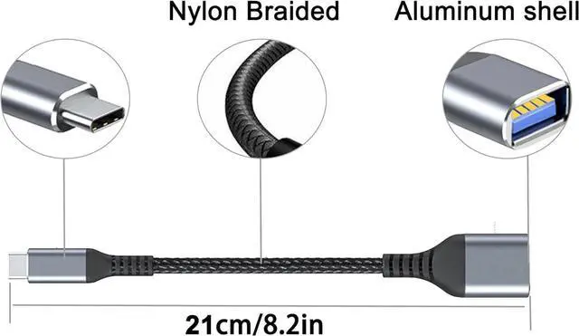 USB OTG functionPlug and play: Responsive Plug in and connect immediately. Short USB C Data Cord No need driver. Convenient and easy to uss and compatible with mostly shell casesCommon compatibility: This usb c male to usb a female extension cable compatible for most USB C devices like the Computer Laptop Tablet U Disk S24/S23/S22/S21 and other USB Type-C devices