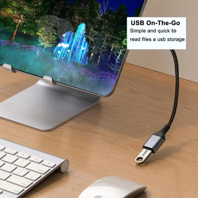 On-The-Go Function: Plug and play no need driver. USB female port allows to access and store apps and files on an external USB flash drive like the keyboard SSD memory card reader or other usb peripherals that support
