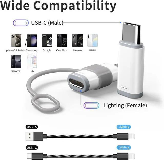 Play: Easy to Carry USB The lightn-ing female to usb-c male adapter comes with 2 Pack. no additional software or drivers. With compact and lightweight design it is easy to carry around anywhere for trip or travelAttention