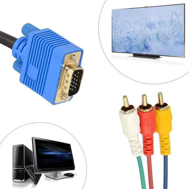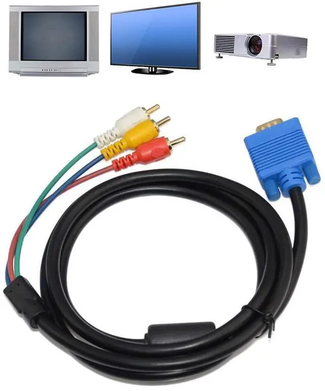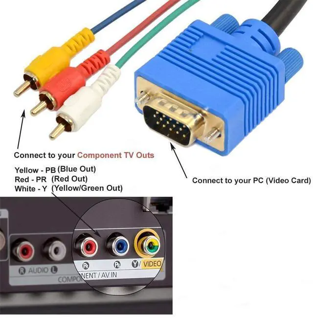 High quality signal transmission Converts VGA to RCA signal. Connector RCA Component Y / Pr / Pb (M x 3). Can only transfer video but not audio. This cable is for Satellite TV HDTV Component RGB Video Y/ Pb /Pr Video and most LCD Projectors. Your display system must support component video (Y Pr Pb) signal output function in order for the image to display properly. Please consult with your VGA card's user manual for more information. Specific TV-out feature on video card is required pleasVGA signal and the color difference signal is the matrix conversion relationship.