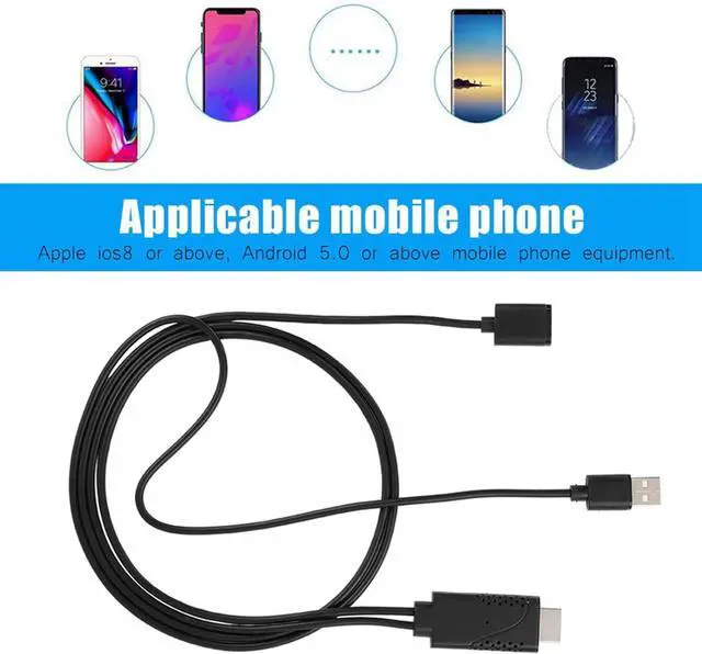 Cooling hole design: Four face- vents are designed to heat dissipation faster while the is stable and the is smoother. 3. The ABS case is used for comfortable wear and -through design. 5. USB female can connect for iOS mobile phone for Android mobile phone and Type? C interface mobile phone. 1. Plug and play first? line connection HD big screen for iOS/ Android phone to HDMI connection TV with the same screen display 1080P output large screen clearer (built? in decoder chip high? speed smooth and not stuck)
