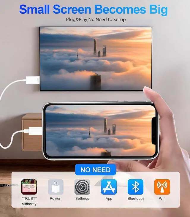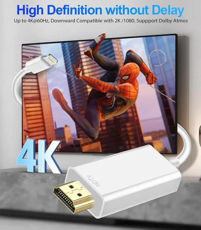 Adapter to iPhone/iPad: Denlane HDMI to lightning adapter equipped with 2025 upgrade chip to ensure high-speed syncing video and audio. Connecting your iphone/ipad to the big screen device includes HDTV Monitor Computer and Projector it will becomes an ideal accessories for watching TV shows meeting playing games facetime or expanding your workspace! HDMI to iPhone