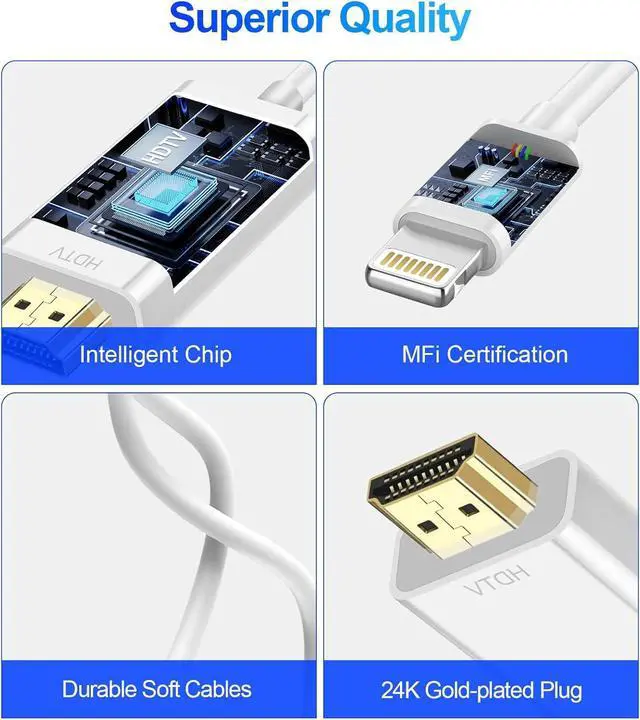 Wide Compatibility for: This ipad/iphone to hdmi adapter for tv is compatible with iphone14/13/12/11 and thier plus/pro/pro max/mini versions for iphone 8th/7th/6th/X/XR/XS/XS Max for iphone SE 1st/2nd; Compatible with iPad 9th/8th/7th/6th/5th iPad Air 3th/2nd iPad Mini 5th/4th/3th iPad Pro 12.9C 0XP(1st-2nd) iPad Pro 10.5C 0XP 1st iPad Pro 9.7C 0XP 1st.