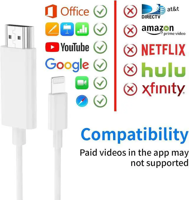 6.6FT Lightning to HDMI Adapter Cable Compatible with iPhone/iPad to enjoy your favorite shows or share entertainment on the Big Screen. This 6.6FT lightning to HDMI cable adapter supports 2K (2560*1440) @60HZ it will mirror of what is displayed on your device screen to your HDMI equipped TV display projector or other compatible display. Universal CompatibleDesigned for iPhone/iPad this iPhone to HDMI cable is compatible with iPhone 14/14 Plus/14 Pro/14 Pro Max/13/13 Pro/13 Pro Max/13 Mini/12/12 Pro/12 Pro Max/12 Mini/11/11 Pro/11 Pro Max iPhone X/XR/XS/XS Max iPhone 8 7 6 Plus iPhone 5/5S/5C/SE 2020. Supports iOS 14/13 and earlier Operation System.