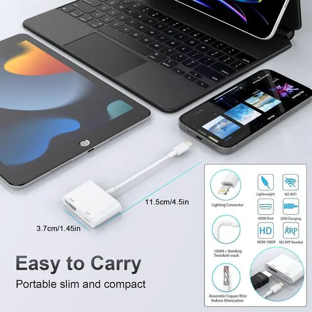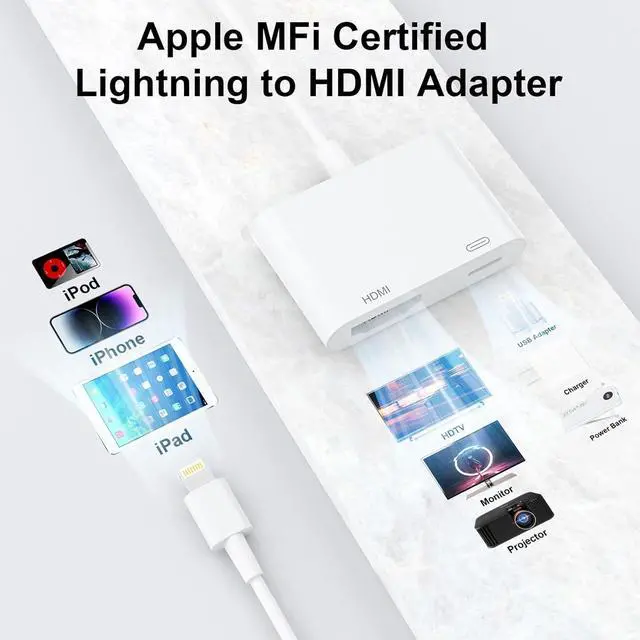 ?? Full 1080P HD DisplayThis iPhone to HDMI adapter allows you to mirror everything on your device screenimages movies games apps presentations websites slide shows and moreonto your HDMI-equipped TV display projector or any other compatible screen in up to Full HD (1080p) resolution. It's compact and portable making it easy to carry with you wherever you go.?? Extensive Compatibility & MFI CertifiedLightning to HDMI Adapter enables support for multiple devices such as iPhone 14/14pro max/13/1211/11 Pro/11 Pro Max iPhone X/XR/XS/XS Max iPhone 8 7 6 Plus iPhone 5/5S/5C/SE 2020; iPad iPod and other the Lightning interface devices Support all iOS Version.
