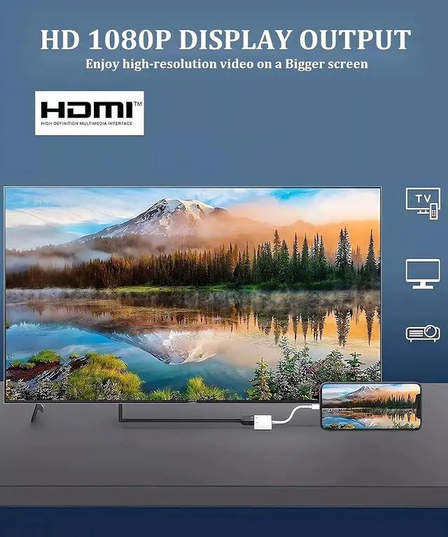 Please note: 5V 1A USB charging cable must be plugged in before use. Universal Compatibility This iPhone to HDMI Adapter for TV enable support for multiple devices such as iPhone 14/14 Plus/14 Pro/14 Pro Max/13/13 Pro/13 Pro Max/13 Mini/12/12 Pro/12 Pro Max/12 Mini/11/11 Pro/11 Pro Max iPhone X/XR/XS/XS Max iPhone 8 7 6 Plus iPhone 5/5S/5C/SE 2020; iPad iPod and other the Lightning devices this lightning to hdmi adapter supports iOS 19 18 17 16 system and before. Durable and Portable Adopted lightweight but premium quality aluminum alloy shell which provides you a long-lasting portable Lightning to HDMI Converter. This HDMI adapter for iPhone has a compact and lightweight design which allows you to carry it in your bag everywhere. This tiny device will fit even in the smallest pocket and will always be with you when you need it. Apps Supported This HDMI adapter for iPhone connector supports YouTube Hulu Plus IDMB Quickly Family On TV ABC NBC FOX and local videos.