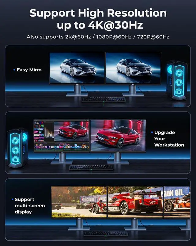 Plug&Play for 4K High-DefDisplayPort to HDMI cable can support max 4K@30Hz resolution (Backward supports 2K@60Hz1080@60Hz720@60Hz) provides life-like and fluent frames to your large display screen giving you a realistic 3D screen experience.