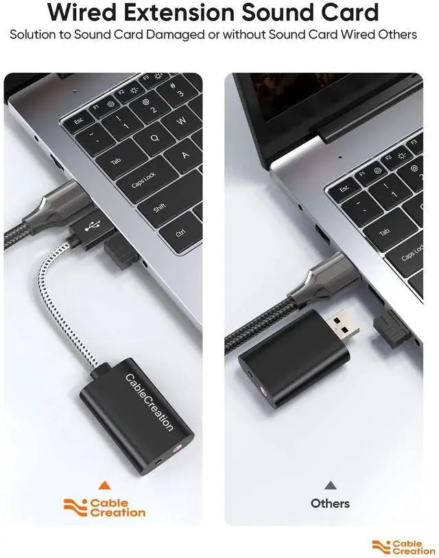 Say goodbye to tangled wires and enjoy hassle-free audio connectivity with our USB to 3.5mm jack audio adapter - perfect for laptops, smartphones, and other devices Improving audio quality on laptops and desktops Connecting headsets with separate microphone and headphone jacks Clear sound quality for playing games, listening to music, and recording.