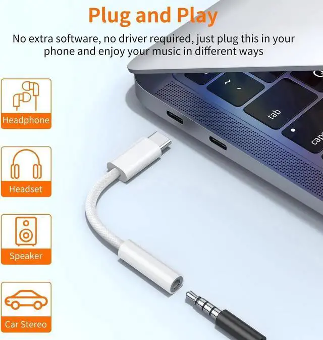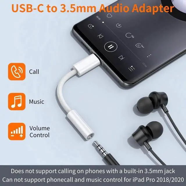 Multi-function Dongle: This USB C to aux adapter enable you to listen musics and answer phone call with your headphone as well as supports wire control function such as microphone volume control pause and play functions playing games plug and play very easy to use.