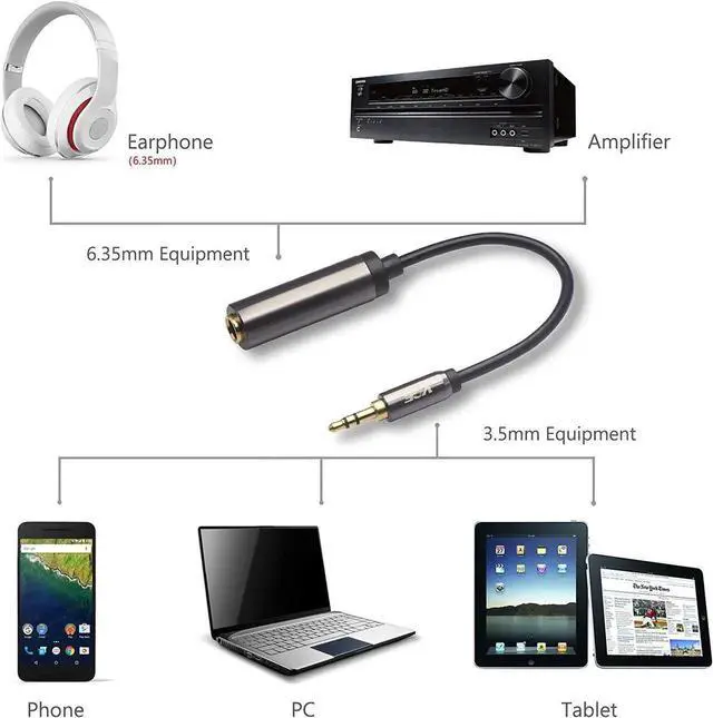 The specially designed protrusion at the end of the plug better accommodates devices with protective casesThe PVC cable on our 1/4 to 3.5 mm adapter is more flexible than rigid adapters. It would reduce the potential of unwanted stress on the electrical component and minimize any negative effects on your equipmentOur package includes an 8-inch (20cm) 3.5 mm male to 6.35 mm female audio adapter. We offer friendly after-sales service and if you encounter any issues please contact us for a satisfactory solution