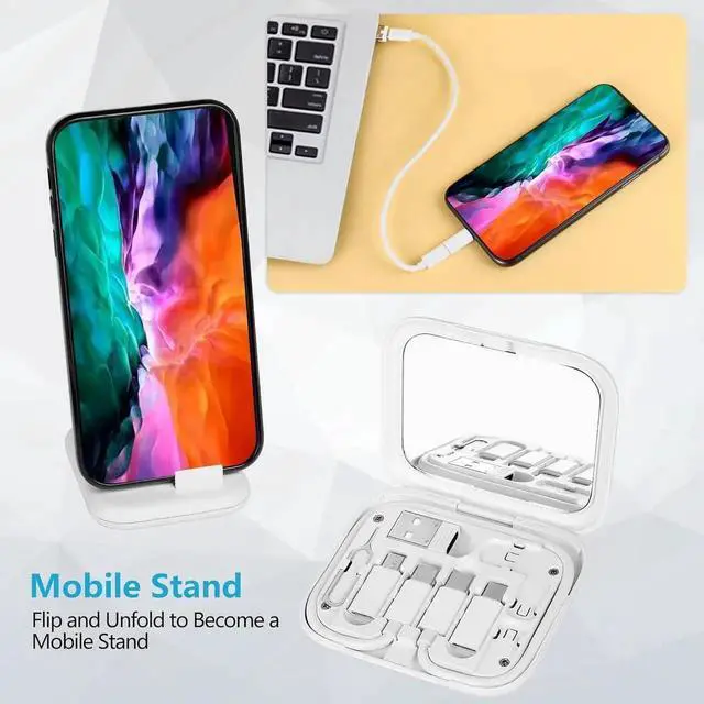 Your Phone: There is a stand on the back of the charging gadget case that can be opened up as a phone stand and can be attached to the case when returned in place.
