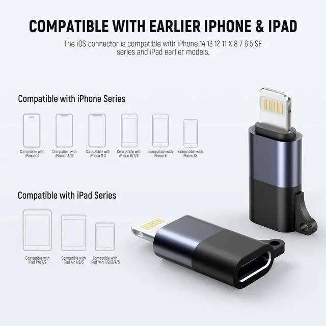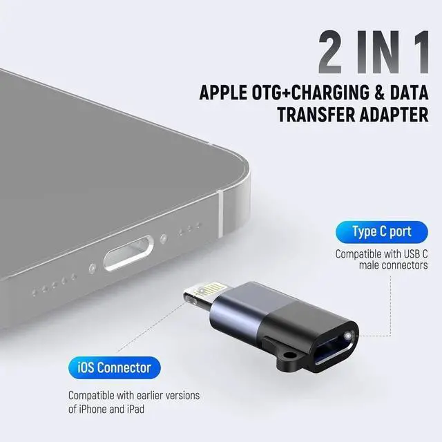 2 Pack OTG Adapter Set This OTG adapter set includes two USB C (female) to iOS (male) adapters making USB C plug & play mic or a wireless microphone receiver compatible with iPhone and iPad of earlier models for audio recording vlogging live streaming video conferencing and moreCompatible with iPhone Early Models The iOS connector is compatible with iPhone 14 13 12 11 X 8 7 6 5 SE series and iPad earlier models as content creator essential and influencer must have accessoriesFor USB C Microphones Compatible with NEEWER KM17 plug & play microphone and KM15/KM16/KM18/KM23 wireless microphone receivers with a USB Type C connectorCompact & Portable Design Mini and lightweight they can fit inside a gear bag pocket and wallet for effortless storage and transportationFor Charging & Data Transfer Can be used on USB C cables to charge the iOS devices or transfer data