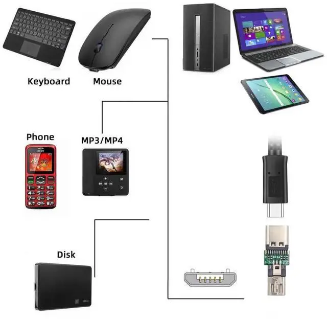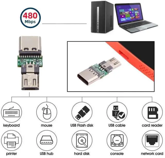 5 PACK Micro USB OTG Adapter Micro USB Male to USB C Female Mini Size Connector AdapterSupport USB 2.0 480Mbps Data rate and 5V Power max. Compatible with most mobile phones and tablets with OTG function. After plugging in the adapter you can connect an external keyboard mouse USB flash drive etc. Mini size plug and play support easy to carry and more flexible.