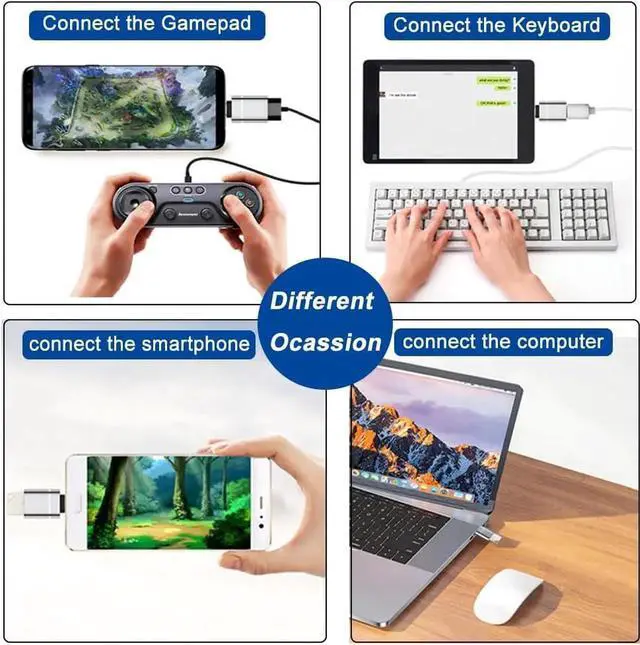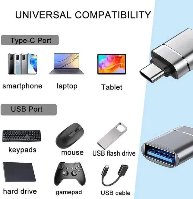 Universal compatibility. The USB to USB C Adapter Compatible with the MacBook Pro 2020 MacBook Pro Air 2020 ect. MacBook Pro after 2016 and for MacBook Air after 2018 and most of the smartphones tablets laptops with a USB Type C port. High-Speed Data Transfer and the Efficient Charging. The Type-C to USB 3.0 adapter can be used for the fast charging with the 5.0G bps and the data transfer in-car conversion and other applications. Plug and play no driver required. The USB 3.0 OTG Adaptor Can be used to connect the USB cable for smartphones charging and the keyboard gamepad USB flash drive.
