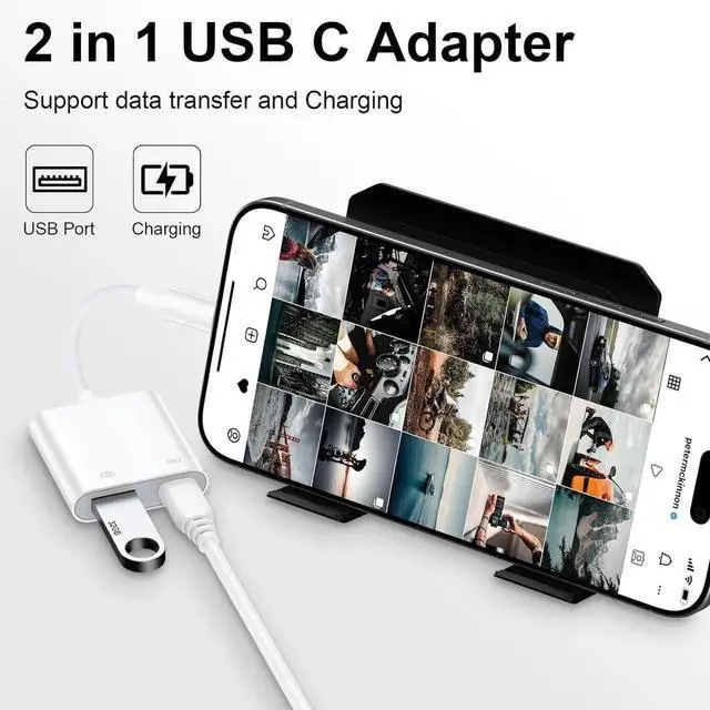 Plug in and use computer peripherals such as flash drive keyboard hub and mouse makes your USB C devices compatible with any other USB devices that support USB On-The-Go. USB C to USB Camera Adapter is an excellent choice for copying photos or videos from the camera in a short time. Effortlessly transfer high-resolution photos and videos directly from your digital camera to your iPhone and iPad. Wide Compatibility2 in 1 USB C Male to USB 3.0 Female OTG Camera Adapter is compatible with iPhone 16 Pro Max 16 Plus 16 16e 16 Pro 15 Plus 15 Pro Max 15 15 Pro Galaxy S25 Ultra/S25 Edge/S25+/S24 FE/S24 Ultra/S24+/S23 FE/S23 Ultra/S23+/S22 Plus/S21 FE/S21 Ultra/S20/S10/S9 Note 20/10/9 Google Pixel 9a 9 Pro XL 9 9 Pro Fold 8a 8 Pro 7a 7Pro 6a 5 4XL iPad Pro/Air/Mini usb flash drive card reader digital camera MIDI keyboard game controller electronic piano usb microphone hub mouse.